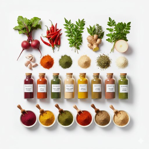 Manufacturing & supply of premium vegetable, herb & spice powders under our signature brand.