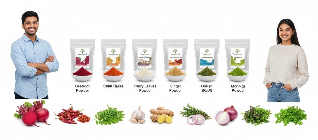 Premium Agricultural & Value-Added Products | B2B Wholesale & B2C Retail | Global Export Solutions Your Trusted Partner for Quality, Integrity & Global Reach. 🌿 BRAND STORY — Vanprasad (Dehydrated Food Powders) Vanprasad is the signature brand of Vega Enterprises, created to redefine how households, chefs, and businesses use traditional Indian ingredients. The name Vanprasad symbolizes purity and nourishment coming straight from nature — carefully preserved, respectfully processed, and thoughtfully delivered. Born from the idea of offering convenience without compromise, Vanprasad specializes in 100% natural dehydrated food powders, crafted from premium-quality vegetables, herbs, and spices. Every batch maintains the original aroma, color, nutritional value, and authenticity of real ingredients — without additives, preservatives, or artificial colors.